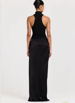 Combining timeless modernity with classical draping, we introduce the Soraia Dress. Crafted from two juxtaposing styles, Soraia features a racerback, form-fitting bodysuit and is complete with a soft satin-like maxi skirt.