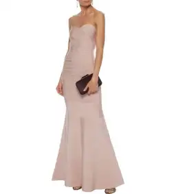 Our Herve Leger Sara Gown has the closest fit, with supportive boning at the bust, this floor-sweeping design is kept in place with internal gumming and cut with a chic sweetheart neckline. Concealed hook and zip fastening at back.