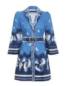 Zimmermann The High Tide Mini Shirt Dress in Blue Sailboats Size 0P / AU 6