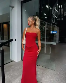 Introducing the Louie Gown, a stunning two-piece gown. Featuring a structured corset top and maxi skirt crafted from luxurious buttery fabric, this gown combines style and comfort. Elevate your winter wardrobe with this versatile piece that exudes sophistication and charm.