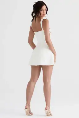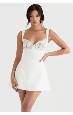 House of CB Adriana Satin and Lace Mini Dress in White/Ivory Size S / AU 8