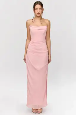 House Of CB Adrienne Georgette Strapless Gown in Pink Quartz Size 8