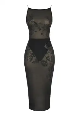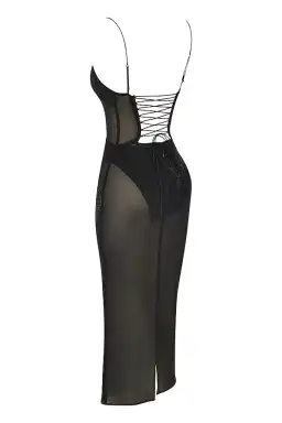 House of CB Amirah Mesh Crystal Embellished Midi Dress Black Size XS / Au 6