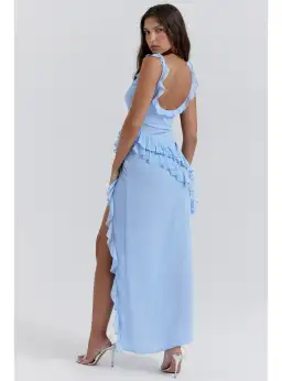 House of CB Ariela Ruffle Maxi Dress in Soft Blue Size S / AU 8