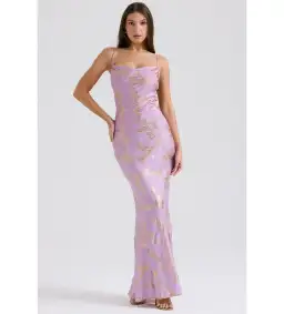 House of CB Capriana Satin Gown Orchid Jacquard Size S/Au 8