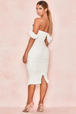 House of CB Carlotta Draped Midi Dress Ivory Size S /AU 8-10