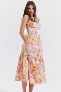 House Of CB Elia Ivory Floral Midi Sundress Floral Size S / Au 8