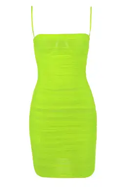 House of CB Ella Ruched Organza Mesh Mini Dress Neon Green Size XS / Au 6
