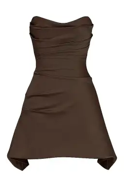 House of CB Jasmine Draped Strapless Corset Mini Dress in Chocolate Brown Size L / AU 12