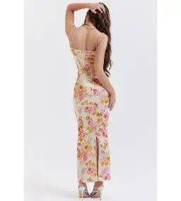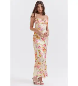 House of CB Josefina Maxi Dress Ivory Floral Size M /Au 10