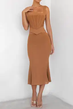 House of CB Mistress Rocks Caramel Gathered Corset & Midi Skirt Set Brown Size XS / AU 6