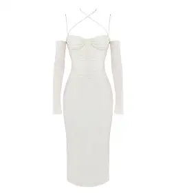 House Of CB Nanoushka Satin Midi Dress Ivory Size L/AU 12