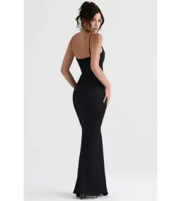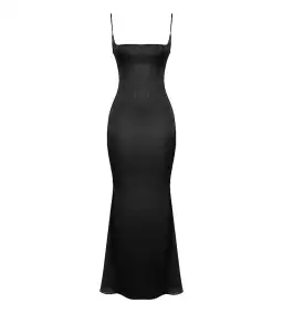 House of CB Olivette Satin Corset Maxi Dress Black Size AU 10