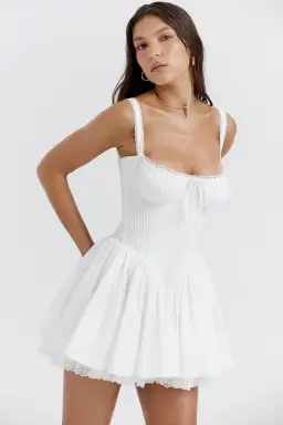 If there was a more perfect soft girl mini dress, we don't know of it. Pietra is all you need to live out your feminine farm girl Summer. The romantic sweetheart neckline has gathered underwired cups and the pin tuck bodice features internal boning that cinches the waist.