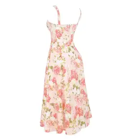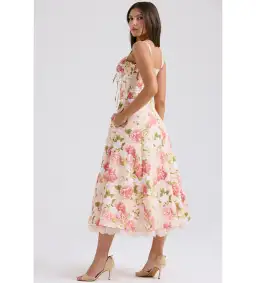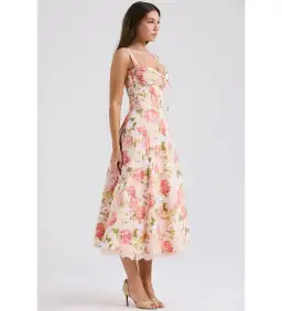 House of CB Rosalee Cotton Bustier Midi Sundress Pink Peony Print Size AU 8