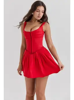 House of CB Scarlet Pleated Mini Dress Scarlet Size AU 8