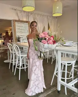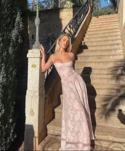 Seren' is perhaps our most romantic dress yet and we're loving the corset inspired lace up back for a vintage feel. It's from a glistening lame fabric that catches the light beautifully in a soft pink, embellished with floral blooms. 'Seren' features a built in bra that's underwired for a flattering bust with delicate rouleau shoulder straps. The semi sheer effect adds to the romantic feel.