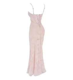 Seren' is perhaps our most romantic dress yet and we're loving the corset inspired lace up back for a vintage feel. It's from a glistening lame fabric that catches the light beautifully in a soft pink, embellished with floral blooms. 'Seren' features a built in bra that's underwired for a flattering bust with delicate rouleau shoulder straps. The semi sheer effect adds to the romantic feel.