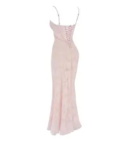House Of CB Seren Floral Lace Back Maxi Dress Soft Pink Size S/AU 8