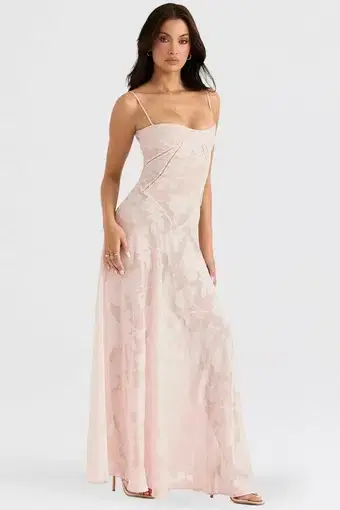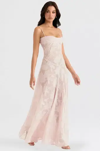 House of CB Seren Lace Back Maxi Dress Soft Pink Floral Size 8