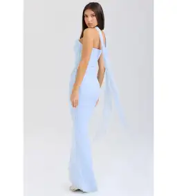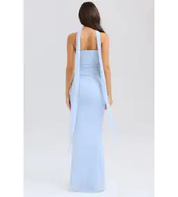 House Of CB Set Hallie Strapless Corset With Neck Scarf & Cassidy Fluted Hem Maxi Skirt Bluebell Size L/AU 12