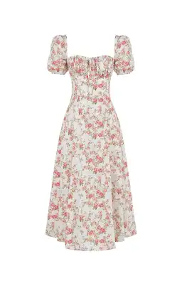 House of CB Tallulah Rose Print Puff Sleeve Midi Sundress Floral Size 12