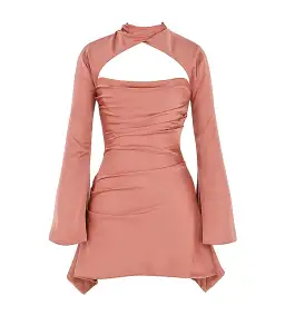 Our 'Toira' mini dress is so fun and flirtatious, making it perfect for romantic date nights. Made from our lustrous silk satin in a pretty rose hue, 'Toira' is cut on the bias and has so many pretty details. The cross front halter shape is so flattering and creates a skin baring open front with a beautifully draped cowl neckline, fitted with our incredible corsetry boning to really cinch the waist.
