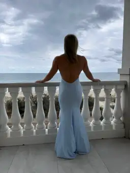 House of Ezis Custom Plunge Gown Blue Size S / AU 8