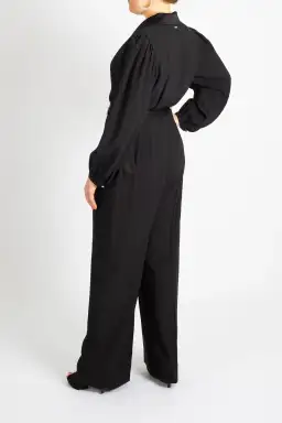 Hugo Boss Tonal Silken Trims Crepe Jumpsuit Black