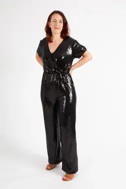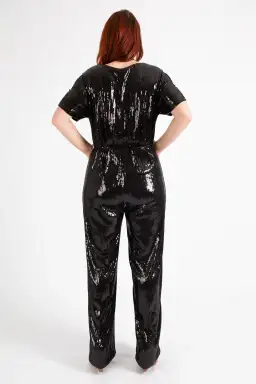 Hugo Boss Stretch Jersey Sequin Jumpsuit with Fixed Wrap Front Black Size AU 10