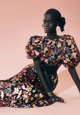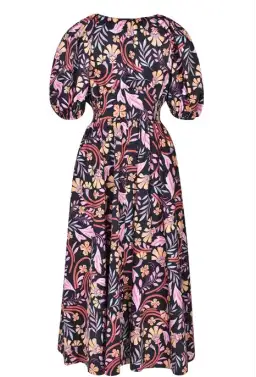 Made from crisp cotton, the Ishtar dress features exaggerated balloon sleeves, beautiful print, a wide waist band shirred across the back for comfort.