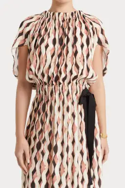 - Printed Viscose Silk- Relaxed fit- Cape sleeve detail
