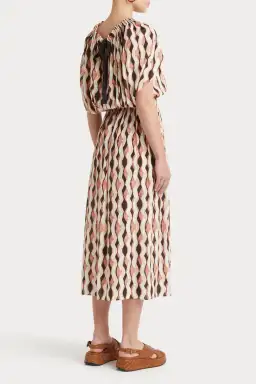 Husk Florence Print Midi Dress in Brown Size M/AU 10