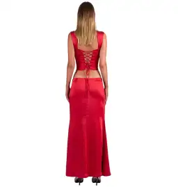 Introducing the Valerie set, an elegant & classic corset and maxi skirt, designed for a summer evening affair. Featuring princess shoulder straps, a lace-up back with boning, a low waist and invisible side zip, she will flatter and cinch the waist like no other. Double-lined from a luxurious silky satin, that glimmers in the light and falls gracefully over the body.