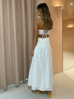 The Exclusive Evelyn Dress in White by Issy has us loving coveted silhouettes in timeless white hues for life's special moments.