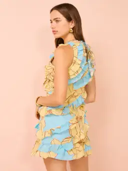 Issy Multi Frill Mini Dress in Summer Print Size 10