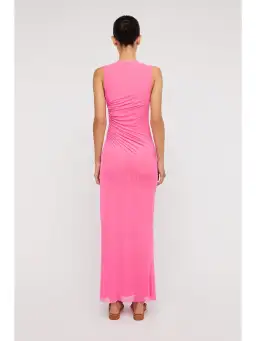 The Italian Mesh Gathered Dress invites modern femininity to occasion wear. Crafted to a minimalist silhouette high-quality mesh fabrication in a bold pink colourway, the dress is defined by the asymmetrical, gathered detailing down the side of the waist for a flattering fit.