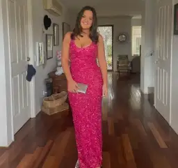 The NBD Janhvi Maxi Dress is designed for the girl who's the life of the party. Its the perfect fun, flirty maxi featuring tonal sequin embellishments throughout. This dress is fully lined with a hidden back zipper closure and low cut back vent. Style her with a gorgeous pink heel and simple jewellery for the perfect formal look!