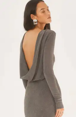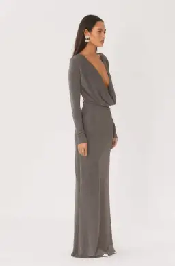 Meet Jen, a timeless and enticing slip maxi designed to dance with the light. Exuding desire and glamour, Jen is crafted from a specialty metallic material featuring a glistening gold fleck. Made reversible, her feminine cowl detail seamlessly plunges down the body; drape her over your decolletage or create a sensual low-back. Adorned in a classic cool grey, Jen’s elevated bias-cut bodice is self lined to skim and support. Created to accentuate the female form, she is a versatile addition to your event collection.