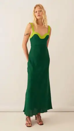Regina is a timeless yet playful dress inspired by the curvaceous female silhouette. The skirt is cut on the bias with a center front seam - making it fit and flatter easily. The linen fabrication allows for versatility of the style; Regina is perfect for a casual occasion with sandals or paired with heels for a summer wedding.