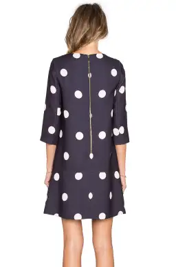 This adorable Kate Spade dress has a drop waist with a flounce. It is such a pretty classic dress with fun polka dots and a flounced hem! The dress has an exposed gold zipper down the back.