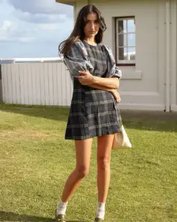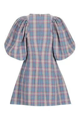 It's fabulous statement sleeves and figure-hugging body have made this iconic silhouette a crowd favourite once again. Inspired by the top-selling Ollyrose design, it features eight curved panel lines for a flattering fit. Made in themuch loved, pastel blue & baby pink plaid fabric. Contrasted with a deep navy X green plaid.