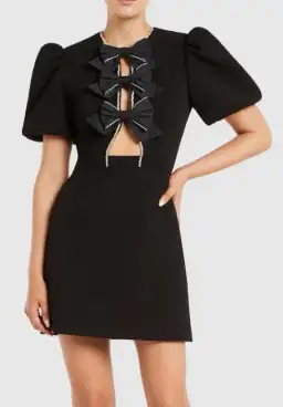 Rebecca Vallance's 'Katie' mini dress is adorned with pretty bows that are trimmed with sparkling crystals. Designed for a slim fit, it's made from cady with cutout detailing and puffed sleeves. Wear yours with point-toe pumps.
