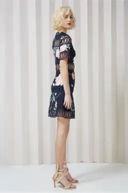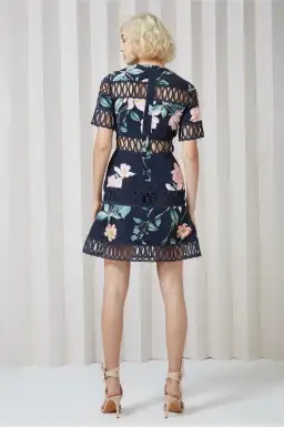 Keepsake Whispers Dress Navy Garden Floral Size M/Au 10