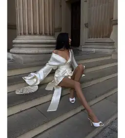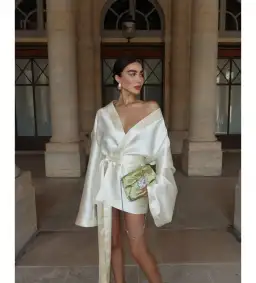 The robe can be worn off the shoulders for a more flirty look; the matching tie belt syncs in the waist if wrapped multiple times according to your desired ultimate look.