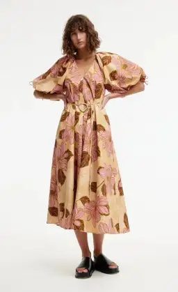 The perfect trans-seasonal style, the Elle Puff Sleeve Maxi features a deep V-neckline and short, voluminous lined puffed sleeves with self-tie detailing.