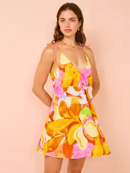 Experience effortless elegance and summer sophistication with the Kinney Mara Mini Dress in Capri Abstract.