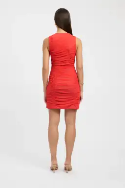 Kookai Bolt Ruched Mini Dress Mandarin Red Size 10