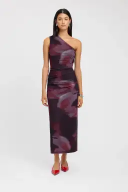 This figure-skimming dress will a stand out in your cocktail edit. Crafted from printed Bolt Mesh fabrication, the Husk Maxi Dress is adored in and abstract floral print rendered in deep pink and maroon hues. This maxi style features a one-shoulder asymmetrical neckline and draws attention to the silhouette with subtle ruched detail on the shoulder and waist.