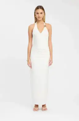 The Paloma Maxi Dress is a stunning addition to any wardrobe. In a creamy Coconut Milk colourway, the luxurious jersey fabric offer both comfort and elegance. The adjustable gold detailing at the neckline adds a touch of sophistication and self styling, while the rouched detailing around the waist creates a flattering fit.